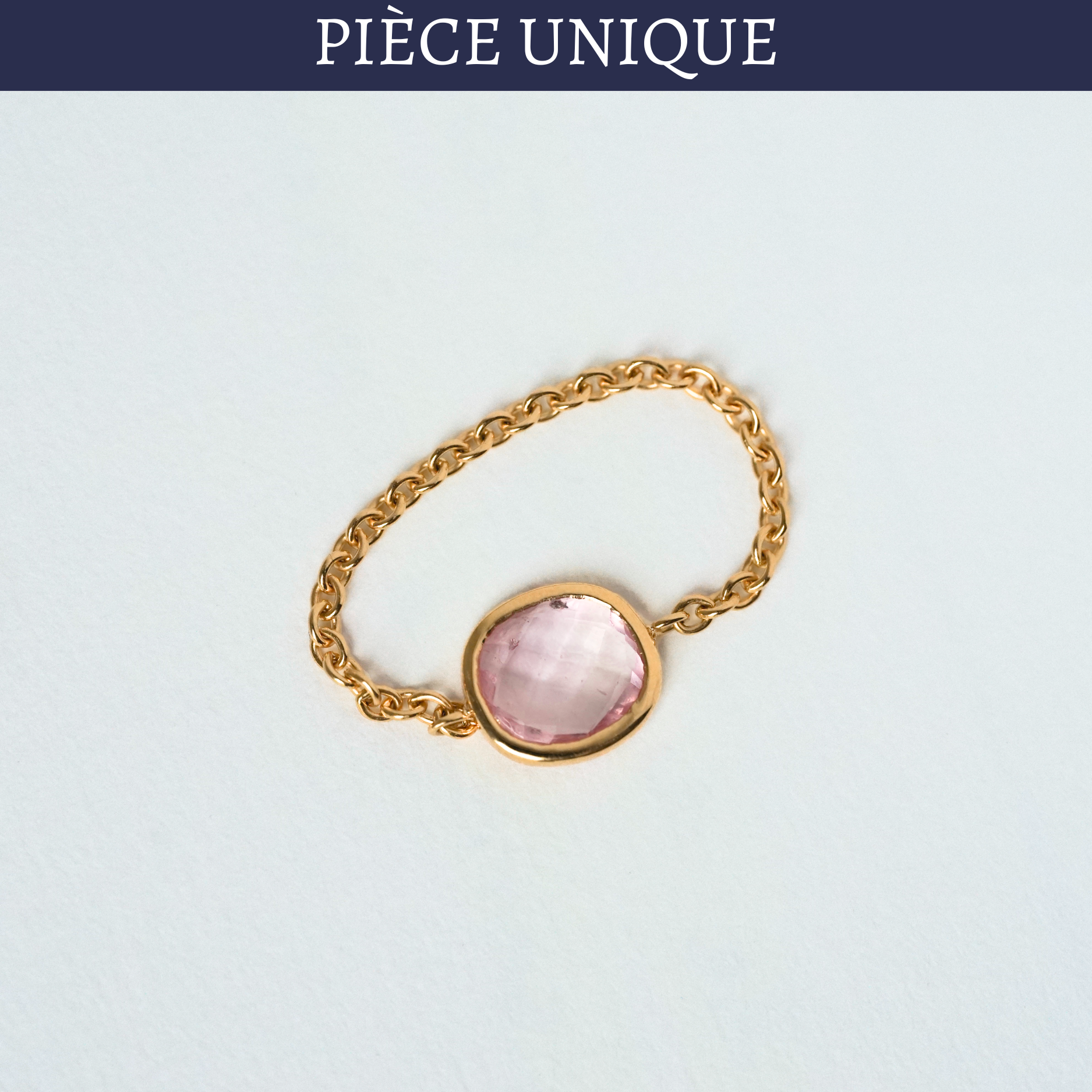 Bague chaîne antique en or recyclé 18 carats (750 millièmes), saphir rose pâle taille rosecut.