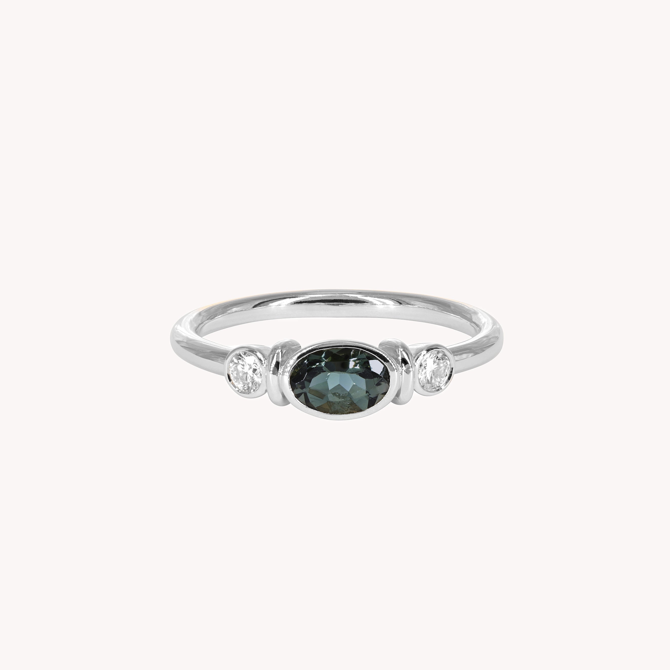Bague en or recyclé 18 carats (750 millièmes), diamants blancs, tourmaline indigolite.