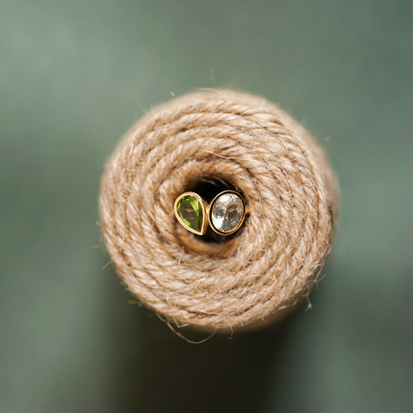 Bague en or recyclé 18 carats (750 millièmes), tourmaline grise, péridot.