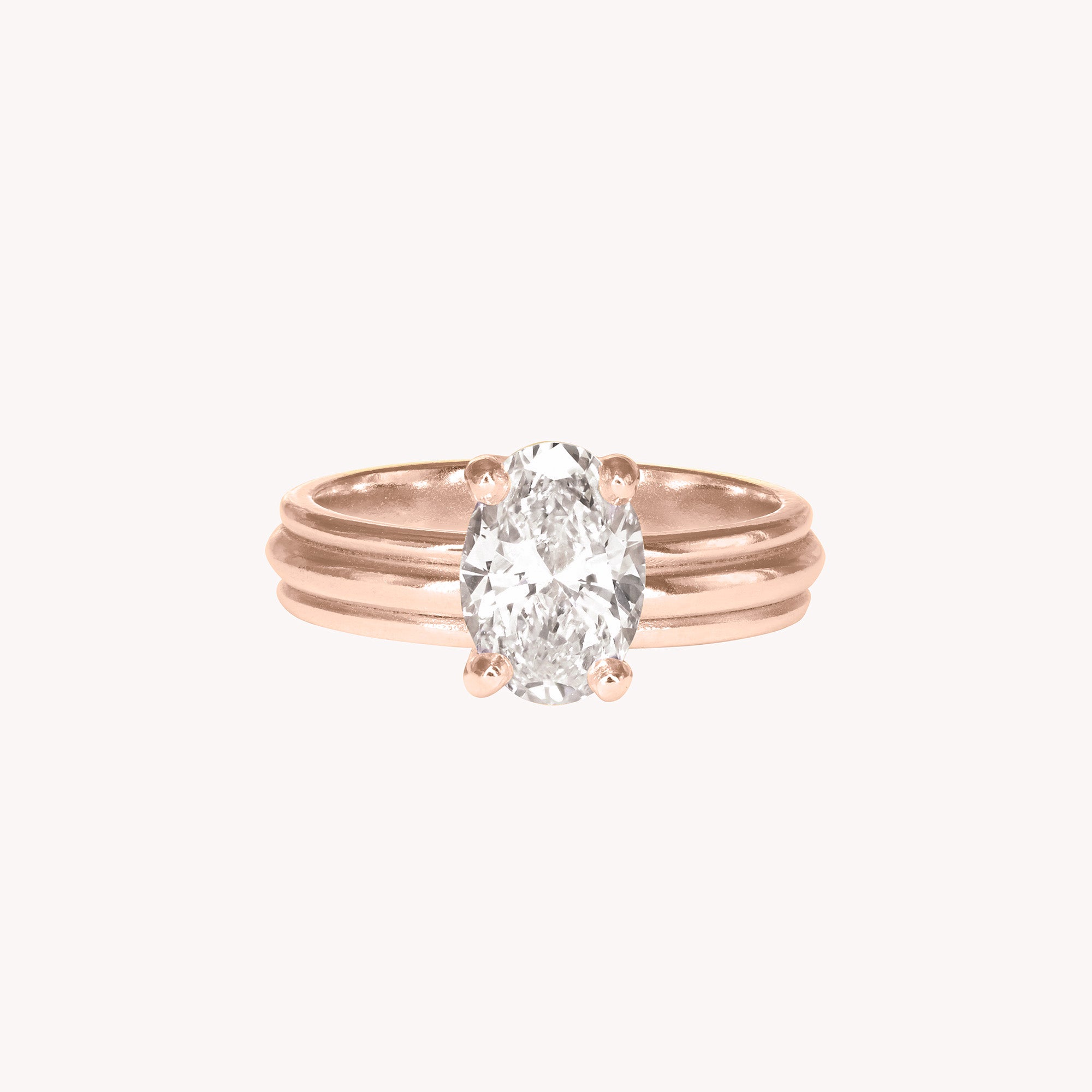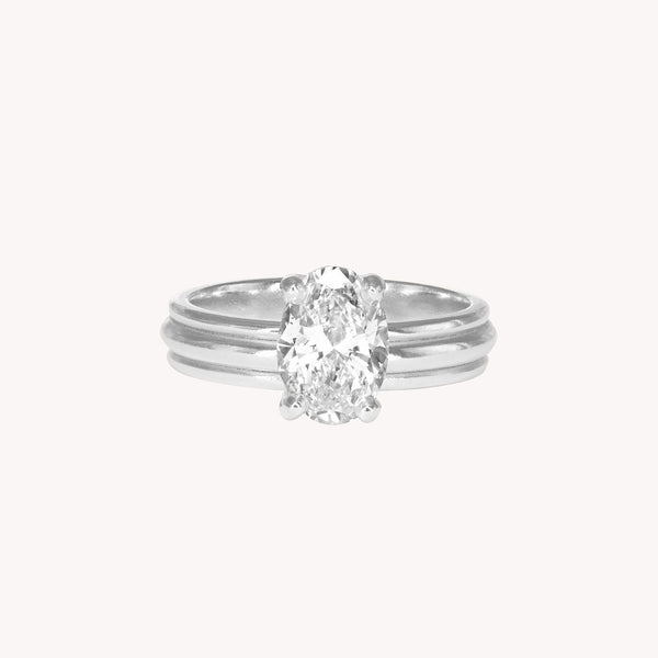 Bague corps bandeau triple anneaux en or recyclé 18 carats (750 millièmes), diamant taille ovale (sourcé à la commande).