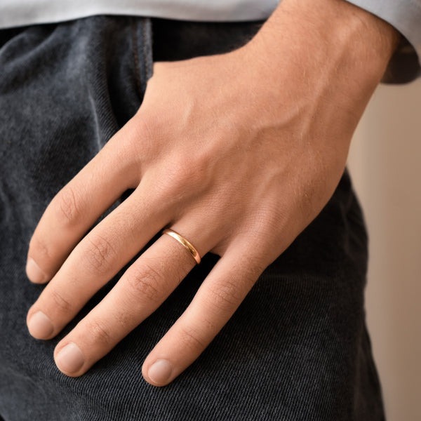 L'alliance des hommes se fait aussi une place pour finaliser l'union. Alliance Demi-Jonc Homme Alba, des anneaux tout or recyclé 18 carats, en toute simplicité et élégance.