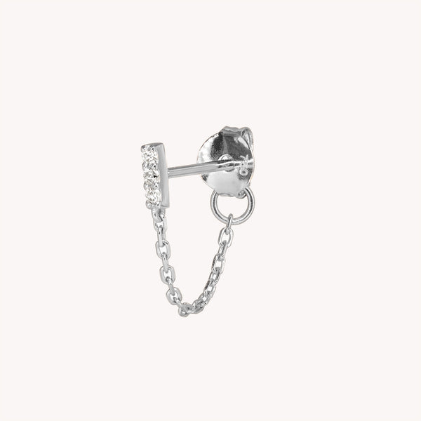 Boucle d’oreille chaîne en or recyclé 18 carats (750 millièmes), diamants blancs, fermoir poussette.